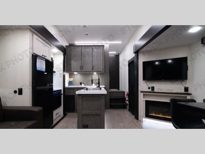 Some of the top features you'll find on these fifth wheels are an armored underbelly tank enclosure and forced air heat, an automatic leveling and stabilization system, and a Juice Pack solar system. Interior features continue on with solid surface countertops with underlighting, fully adjustable, slow rise, blackout roller shades in the main living area, and a pet friendly "Clean Sweep" floor design with no heat vents.