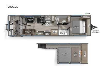 You will always find a comfortable place to relax with friends and family, cook with the full kitchen amenities, and clean up daily in the bathroom. There are also cozy sleeping spaces, plenty of storage options, and durable construction materials so you can enjoy your trailer for years to come!
