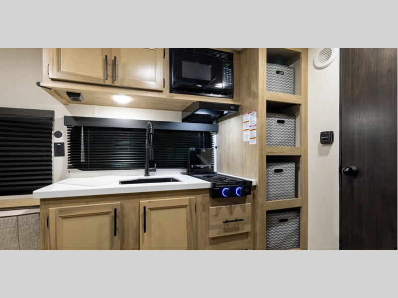 You'll enjoy all the features included on the standard Cherokee Wolf Pup plus added features on the Black Label. Each model features durable construction material so you can enjoy your RV for years to come. There are full bath and kitchen amenities, comfortable places to relax and sleep, plus ample storage space for your belongings.