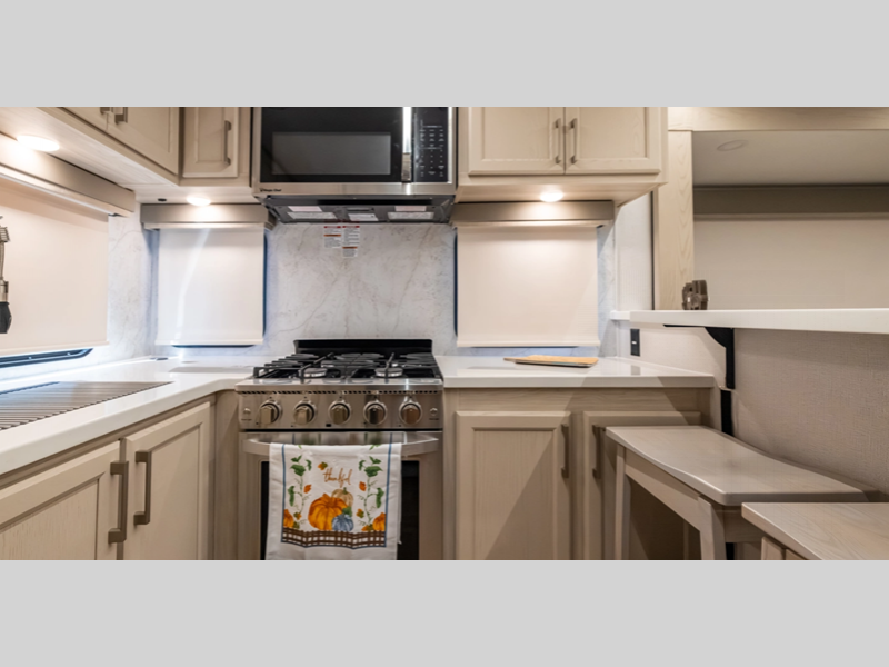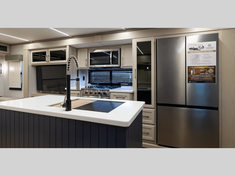 - Stainless Steel Appliance Pkg including 18 cu ft. 12V Refer, 1.7 Cu Ft Microwave and Residential Style 24" Range