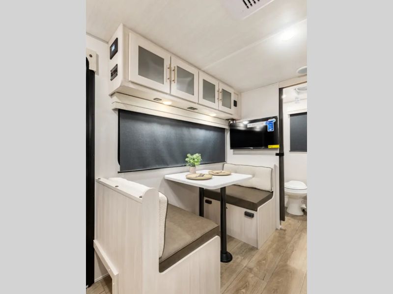 Sleeps 3 Length 22 ft 2 in Ext Width 8 ft Ext Height 10 ft 4 in Hitch Weight 385 lbs GVWR 4785 lbs Dry Weight 3649 lbs Cargo Capacity 1136 lbs Fresh Water Capacity 30 gals Grey Water Capacity 30 gals Black Water Capacity 30 gals Available Beds Murphy Refrigerator Type 12V Black Glass Cooktop Burners 2 Number of Awnings 1 Water Heater Type Tankless AC BTU 15000 btu TV Info 12V TV Awning Info 11' Power Axle Count 1 Shower Type Standard Similar Floorplans