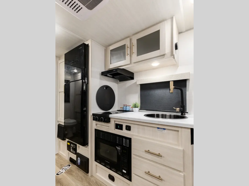 Sleeps 3 Slides 1 Length 23 ft 1 in Ext Width 8 ft Ext Height 10 ft 4 in Hitch Weight 430 lbs GVWR 5000 lbs Dry Weight 4089 lbs Cargo Capacity 911 lbs Fresh Water Capacity 30 gals Grey Water Capacity 30 gals Black Water Capacity 30 gals Available Beds Queen Refrigerator Type 12V Black Glass Cooktop Burners 2 Number of Awnings 1 Water Heater Type Tankless AC BTU 15000 btu TV Info 12V TV Awning Info 14' Axle Count 1 Shower Type Standard -