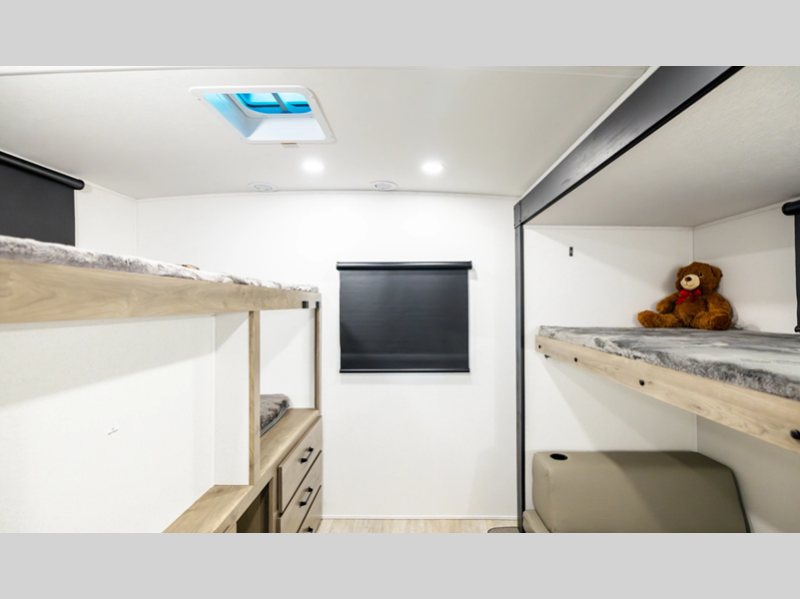Sleeps 9 Slides 2 Length 33 ft 6 in Ext Width 8 ft Ext Height 10 ft 10 in Hitch Weight 675 lbs Dry Weight 6153 lbs Cargo Capacity 1447 lbs Fresh Water Capacity 42 gals Grey Water Capacity 60 gals Black Water Capacity 30 gals Number Of Bunks 4 Available Beds RV Queen Refrigerator Type Electric Refrigerator Size 11 cu ft Cooktop Burners 3 Number of Awnings 1 LP Tank Capacity 20 lbs AC BTU 15000 btu Awning Info 21' Power with LED Lights Axle Count 2 Number of LP Tanks 2 Shower Type Standard Similar Floorplans