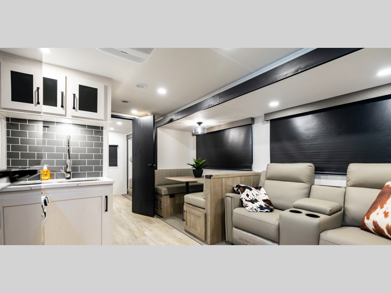 Each model is constructed with a fully laminated roof and rear wall, a fully enclosed and heated underbelly, and 5/8" tongue and groove flooring. You will love the interior with LED lights, a stainless-steel sink, and roller shades to name a few comforts.