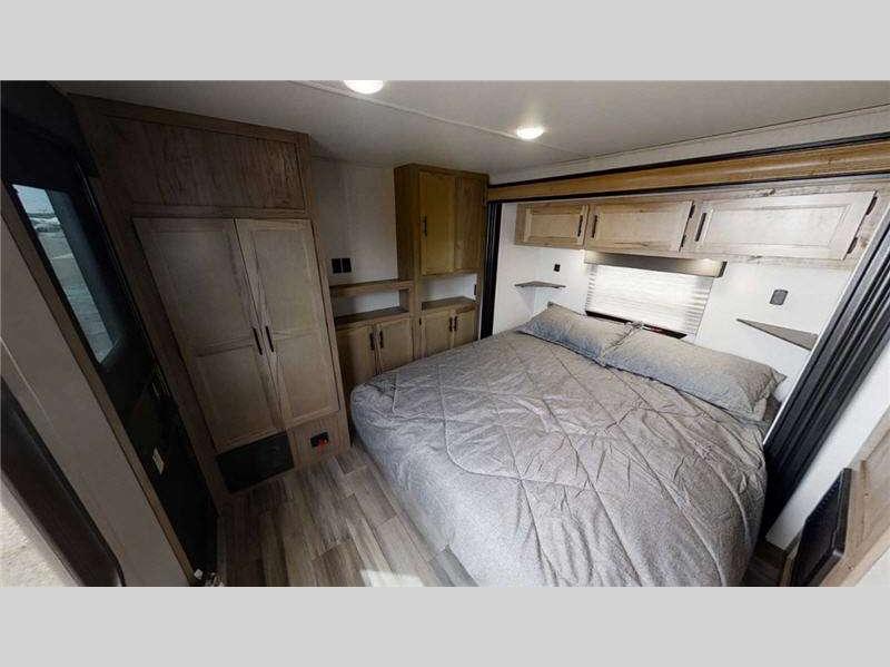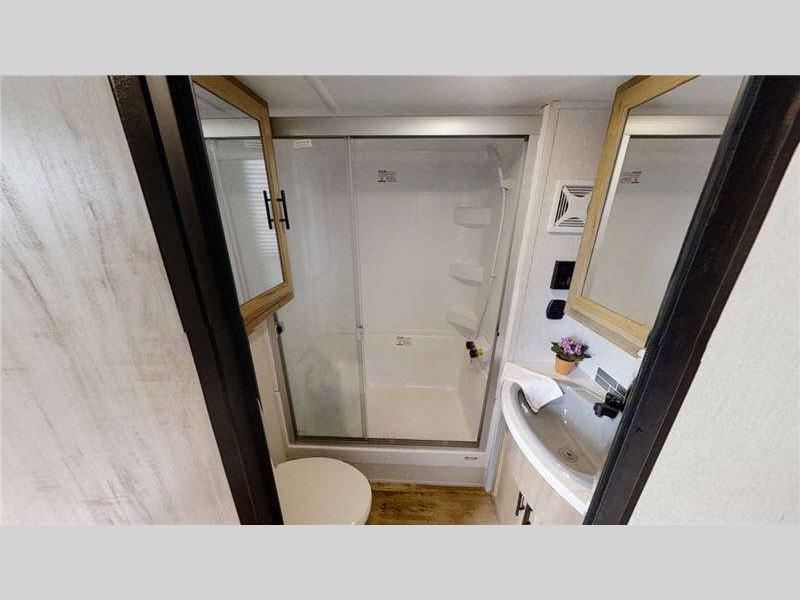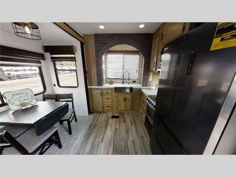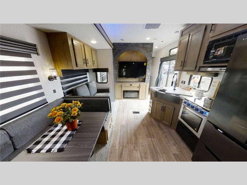 You'll find power gear frame technology for added durability, and a seamless roofing membrane with heat reflectivity to keep your RV cooler during the summer. The upgraded kitchen appliance package will have your space feeling more like home, and the night shades will give you more privacy in the evenings when it's time to turn in.