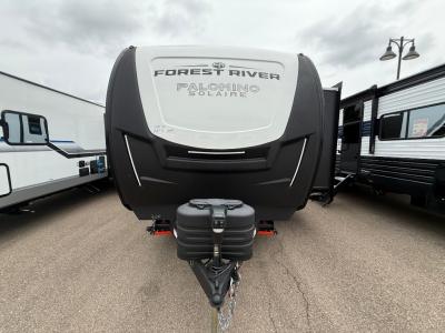 Each SolAire travel trailer by Palomino features a white gel coat exterior and an aluminum superstructure frame for lightweight towing. You will love having a power tongue jack for easy set up, plus slam latch baggage doors with magnets to make unloading easier than ever. There is also a power awning with LED lights and aluminum wheels included on the exterior. Each SolAire is constructed to last with Azdel composite, a fully laminated rear wall and roof, plus a fully enclosed and heated underbelly. The interior includes roller shades and kitchen backsplash, USB ports to keep your electronics charged, a Bluetooth stereo with speakers, and many more stand-out features!